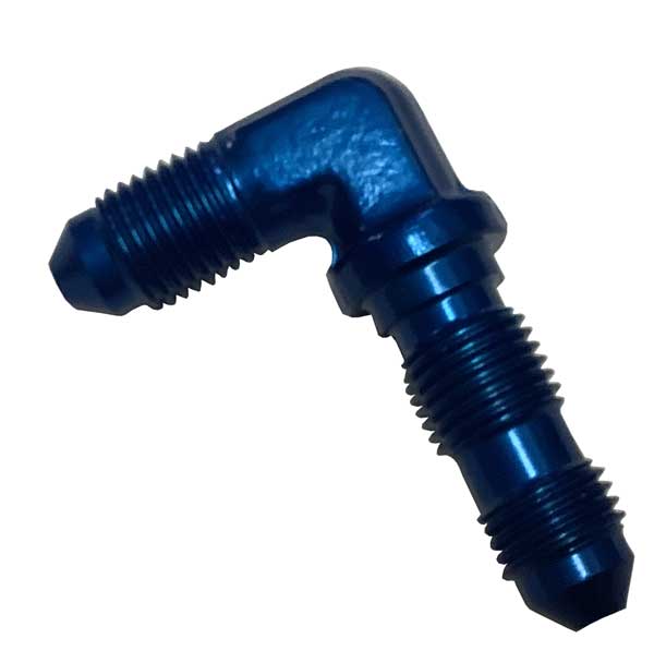 Fitting - Bulkhead - 90 Degree - 3 AN Male to 3 AN Male Bulkhead - Aluminum - Blue Anodize - Each
